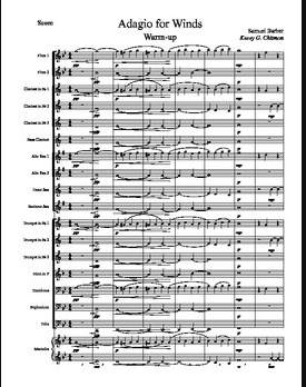 This sheet music is titled “Adagio for Winds”, and the composer listed is Samuel Barber with a warm-up arrangement by Casey G. Chilton.